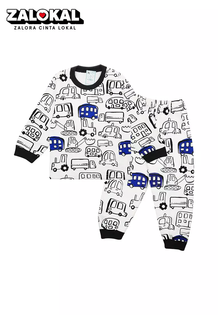 Skabe Setelan Piyama Bayi Anak Laki Laki Bus Printed 3204 Hitam
