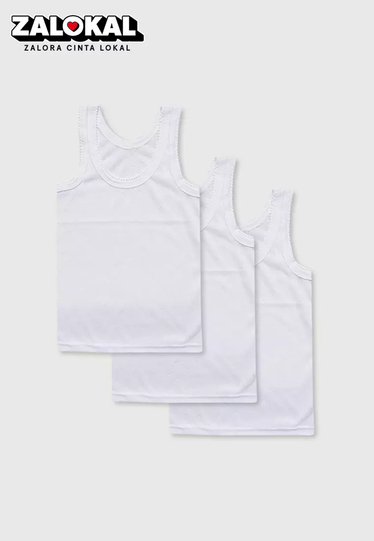 Wakakids 3 Pcs Kaos Dalam Bayi Anak Singlet Usia 0 Bulan Hingga 2 Tahun Jala Putih Vench