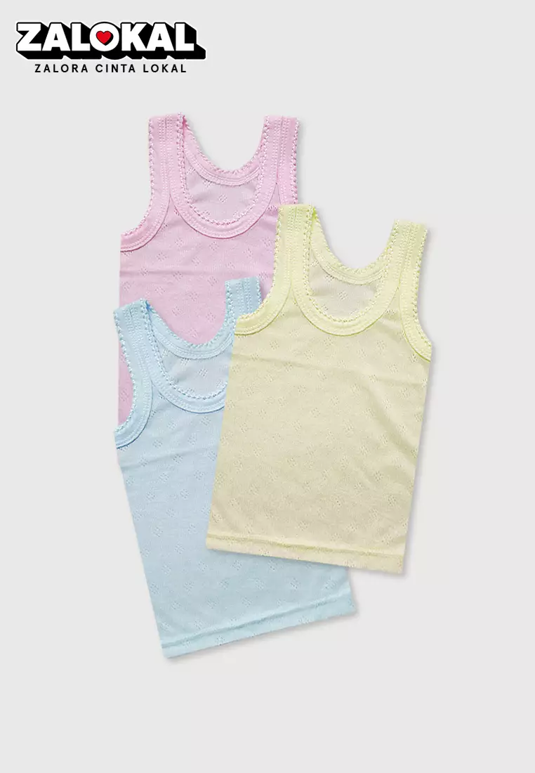 Wakakids 3 Pcs Kaos Dalam Bayi Anak Singlet Usia 0 Bulan Hingga 2 Tahun Jala Warna Vench
