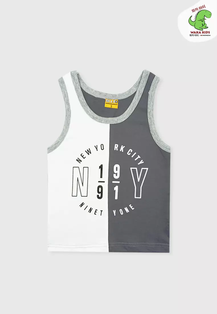 Wakakids Baju Anak Laki Laki Atasan Kaos Singlet Motif New York City 4063 Skats Abu
