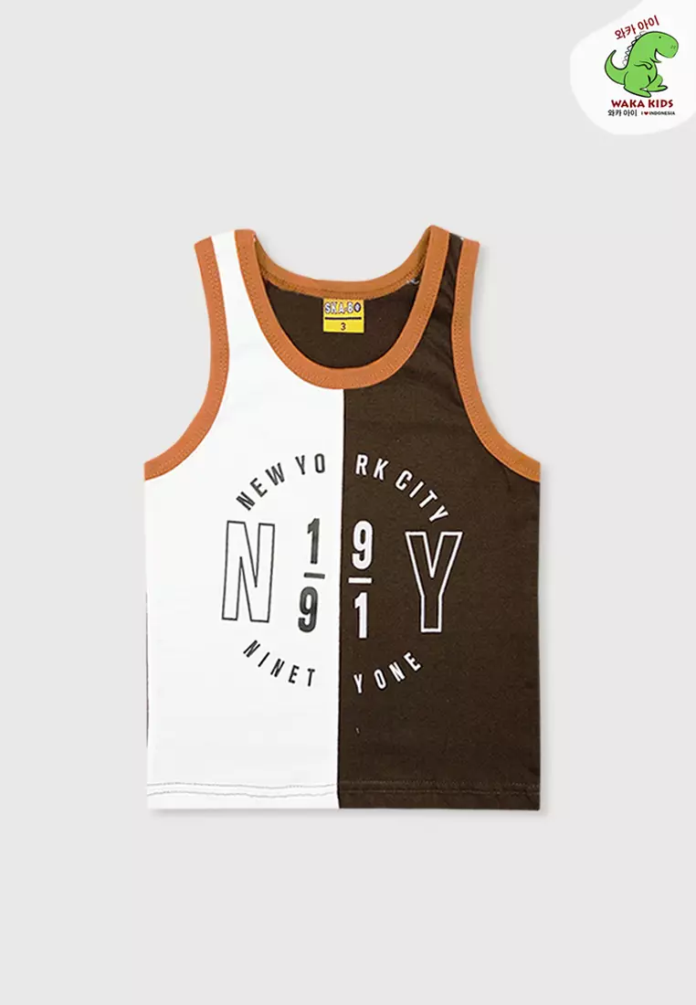 Wakakids Baju Anak Laki Laki Atasan Kaos Singlet Motif New York City 4063 Skats Cokelat Tua