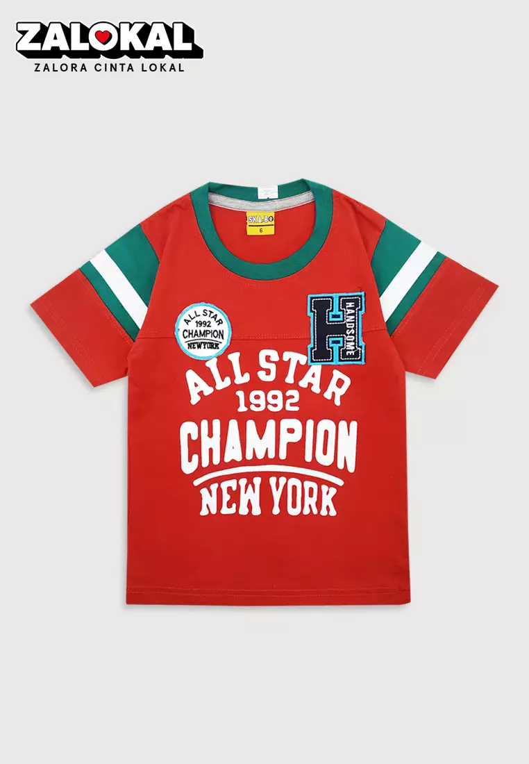 Wakakids Baju Anak Laki Laki Atasan Kaos Usia 3 Tahun Hingga 9 Tahun Motif All Star New York 3894 Merah SKATS