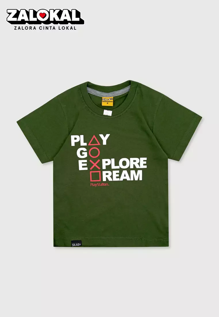 WAKAKIDSWakakids Baju Anak Laki Laki Atasan Kaos Usia 3 Tahun Hingga 9 Tahun Oblong Lengan Pendek Motif Play Go Explore Dream 4185 Army SKATS167900.0059000.00