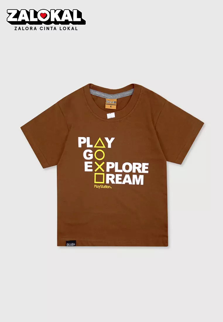 WAKAKIDSWakakids Baju Anak Laki Laki Atasan Kaos Usia 3 Tahun Hingga 9 Tahun Oblong Lengan Pendek Motif Play Go Explore Dream 4185 Cokelat SKATS167900.0059000.00