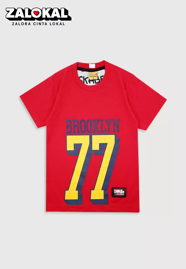 Wakakids Baju Anak Laki Laki Atasan Kaos Usia 4 Tahun Hingga 14 Tahun Motif Brooklyn 3893 Merah SPATS