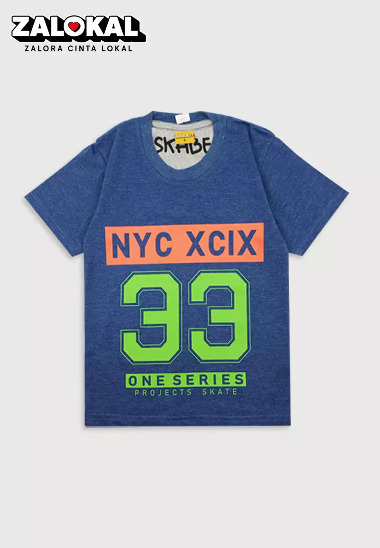 WAKAKIDSWakakids Baju Anak Laki Laki Atasan Kaos Usia 4 Tahun Hingga 14 Tahun Motif NYC One Series 3885 Biru Abu SPATS252900.00101100.00