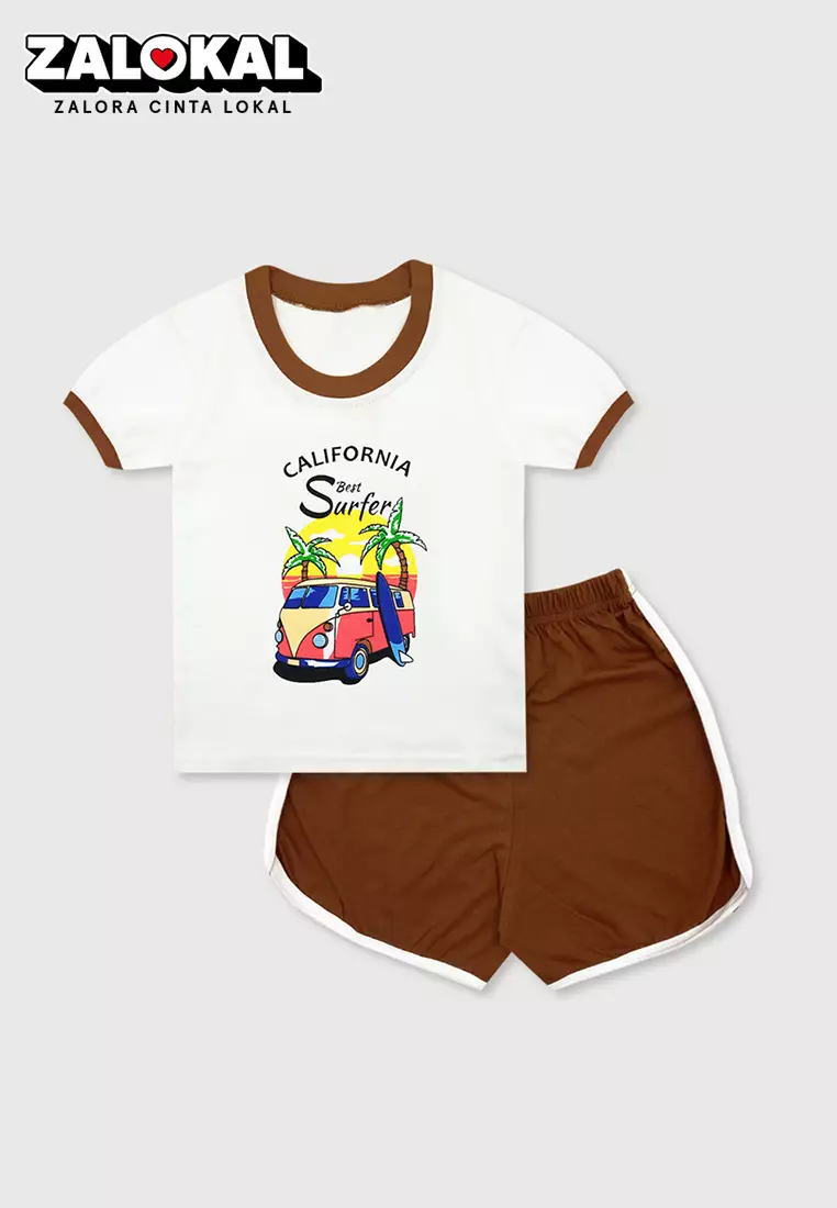WAKAKIDSWakakids Baju Anak Oblong Lengan Pendek Setelan Celana Kaos Playset Unisex Motif Best Surfer 4094 Vench Coklat133900.0063800.00