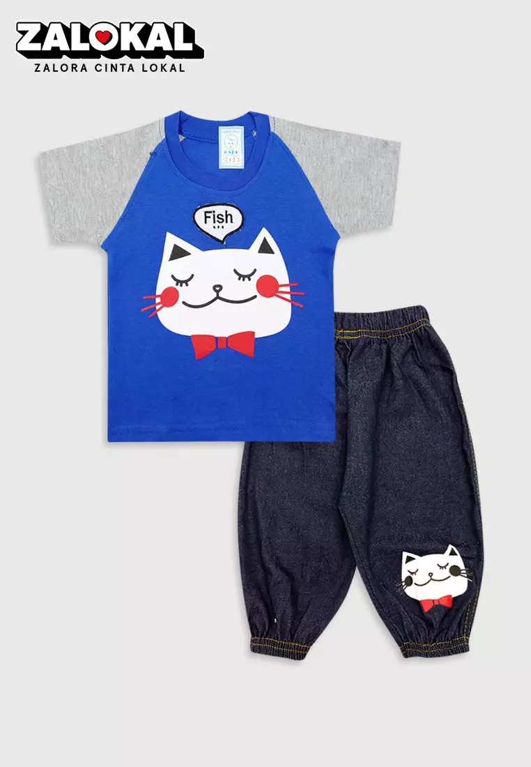 WAKAKIDSWakakids Baju Bayi Anak Laki Laki Lengan Pendek Usia 6 Bulan Hingga 12 Bulan Setelan Celana Jeans Jogger Motif Cat Fish 3451 Biru167900.0059900.00