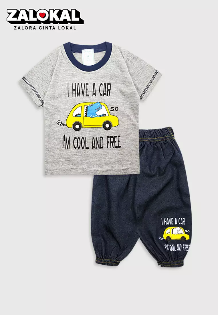 WAKAKIDSWakakids Baju Bayi Anak Laki Laki Setelan Celana Jeans Jogger Im Cool 3439 Abu190900.0057800.00