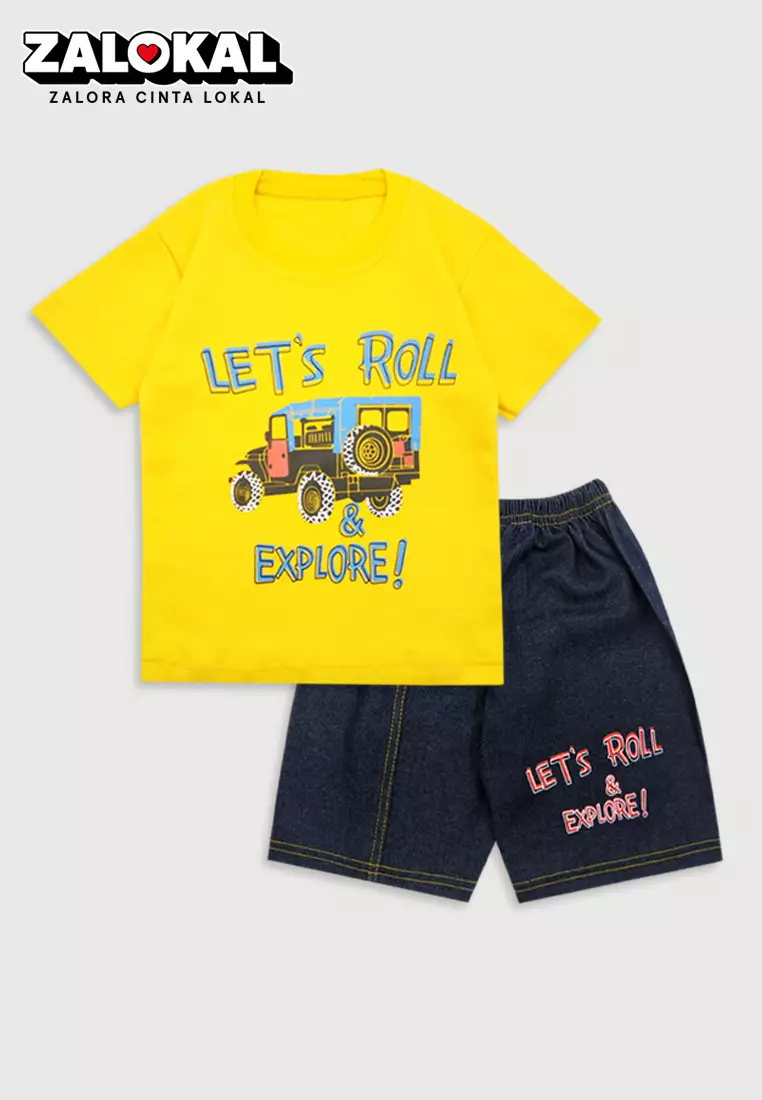 Wakakids Baju Bayi Anak Laki Laki Setelan Celana Jeans Motif Lets Roll Explore 3321 Kuning