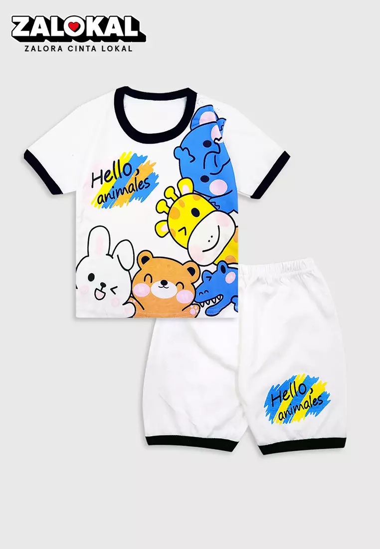 WAKAKIDSWakakids Baju Bayi Anak Laki Laki Setelan Celana Kaos Usia 6 Bulan Hingga 12 Bulan Motif Hello Animals 4058 Biru112900.0061200.00