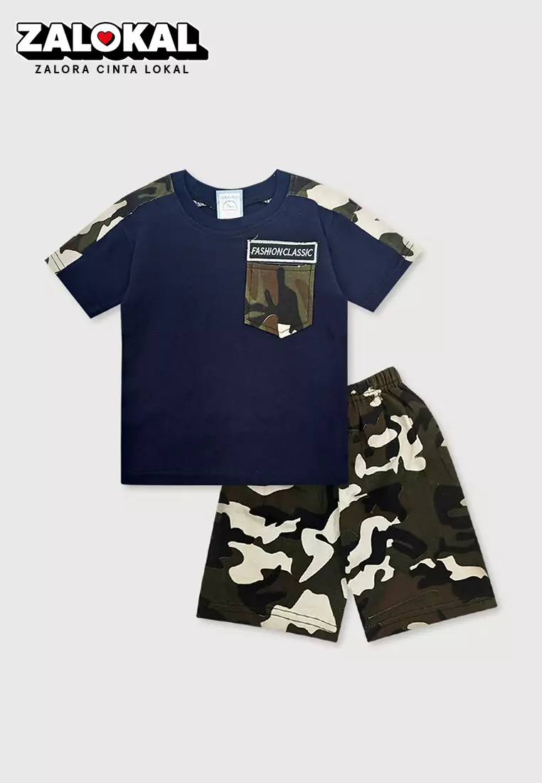 WAKAKIDSWakakids Baju Bayi Anak Laki Laki Usi 6 Bulan Hingga 12 Bulan Setelan Celana Army Motif Fashion Classic 3036 Navy174900.0067100.00