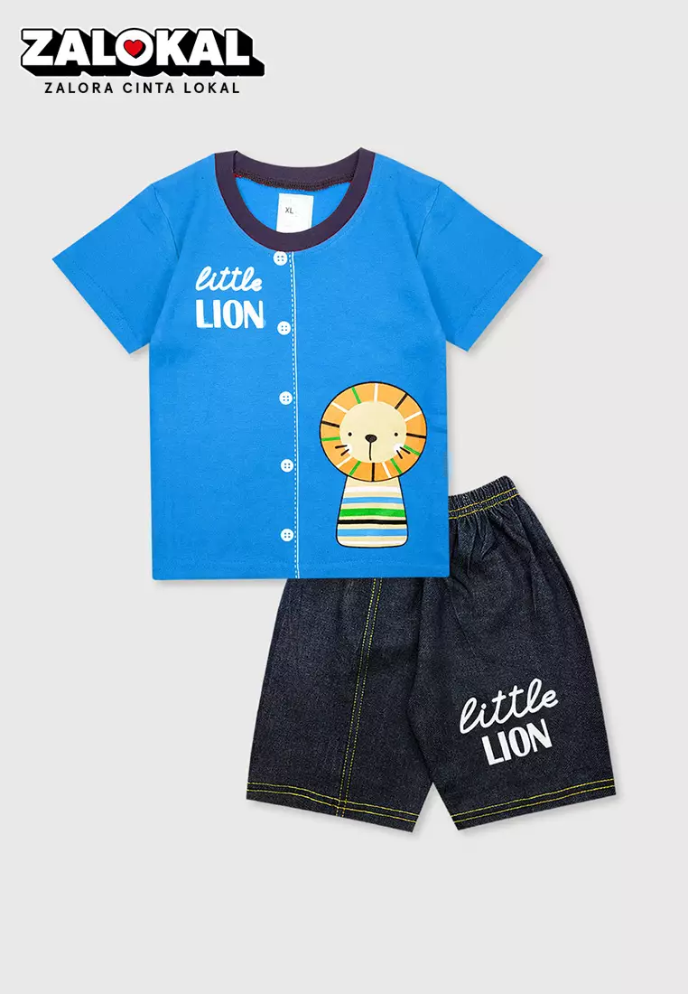 WAKAKIDSWakakids Baju Bayi Anak Laki Laki Usia 12 Bulan Hingga 18 Bulan Setelan Celana Jeans Motif Little Lion 3401 Turkis181900.0072900.00