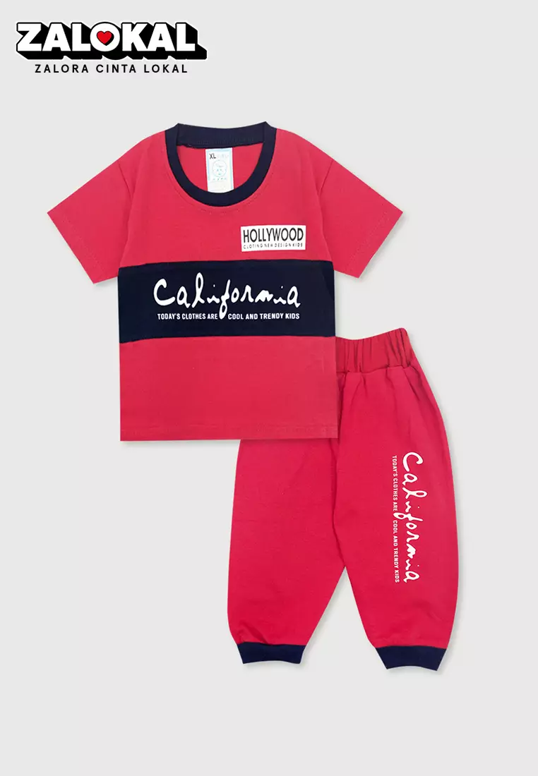 Wakakids Baju Bayi Anak Laki Laki Usia 12 Bulan Hingga 18 Bulan Setelan Celana Jogger Motif California 3022 Merah