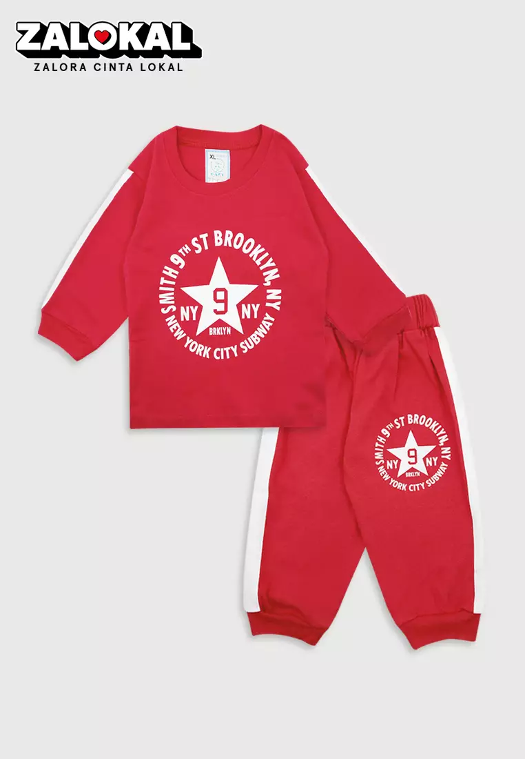 WAKAKIDSWakakids Baju Lengan Panjang Setelan Celana Jogger Piyama Anak Laki Laki Usia 12 Bulan Hingga 18 Bulan Motif Brooklyn NY 3014 Merah225900.0078500.00