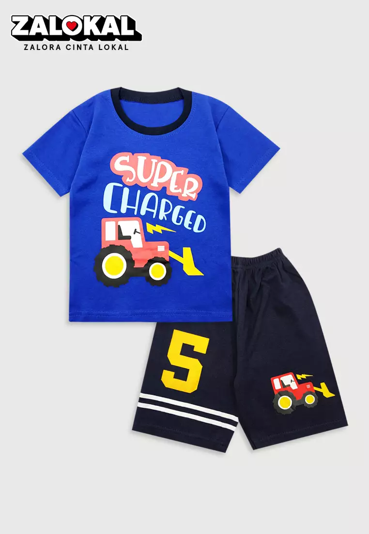 WAKAKIDSWakakids Baju Lengan Pendek Bayi Anak Laki Laki Setelan Celana Kaos Tractor 3377 Biru181900.0064100.00