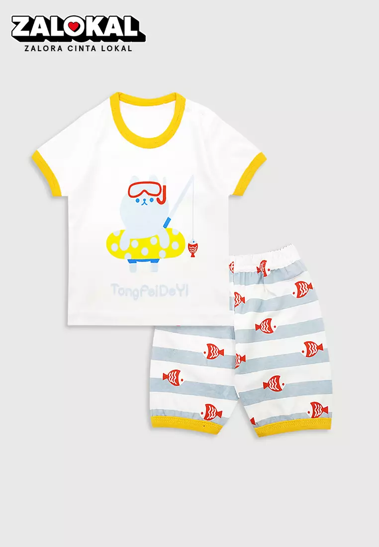 WAKAKIDSWakakids Baju Oblong Pendek Setelan Bayi Anak Laki Laki Usia 0 Bulan Hingga 6 Bulan Motif Fishing 4055 Kuning100900.0052100.00