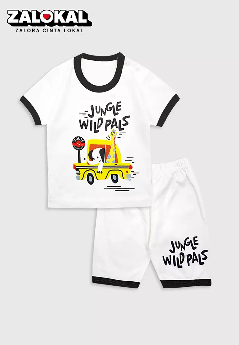 WAKAKIDSWakakids Baju Oblong Pendek Setelan Bayi Anak Laki Laki Usia 0 Bulan Hingga 6 Bulan Motif Jungle Wild Pals 4036 Hitam98900.0049000.00