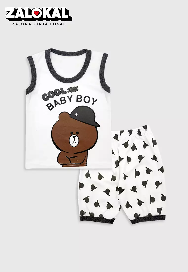 WAKAKIDSWakakids Baju Singlet Bayi Anak Laki Laki Motif Cool Baby Boy Setelan Celana Kaos Usia 6 Bulan Hingga 12 Bulan 4056 Abu Tua107900.0053300.00