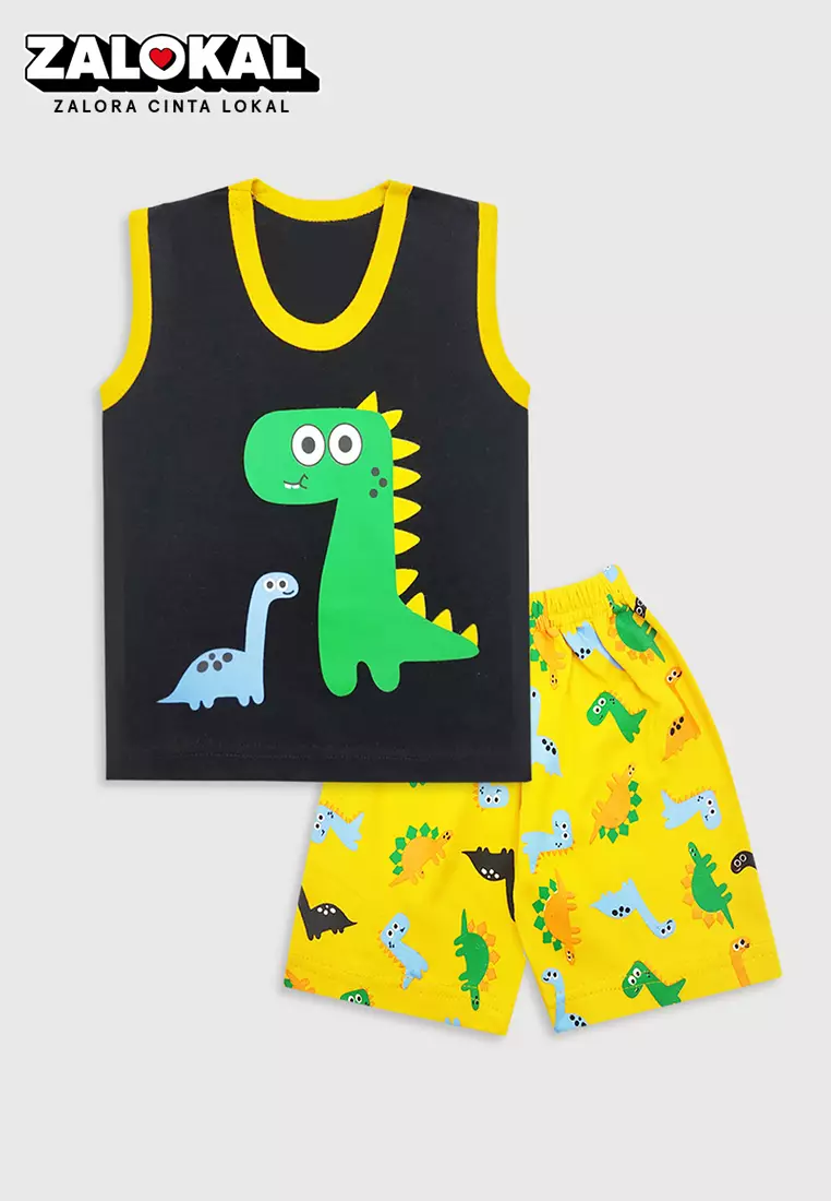 WAKAKIDSWakakids Baju Singlet Bayi Anak Laki Laki Motif Dino Setelan Celana Kaos Usia 6 Bulan Hingga 12 Bulan 3126 Hitam163900.0063500.00