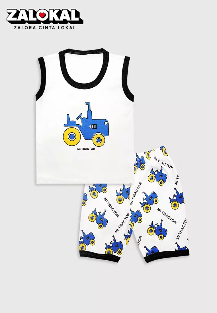 WAKAKIDSWakakids Baju Singlet Bayi Anak Laki Laki Motif Tractor Setelan Celana Kaos Usia 0 Bulan Hingga 6 Bulan 4033 Hitam98900.0050500.00