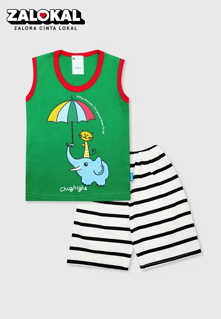 WAKAKIDSWakakids Baju Singlet Bayi Anak Laki Laki Usia 12 Bulan Hingga 18 Bulan Setelan Celana Kaos Motif Elephant Friends 3397 Hijau165900.0062800.00