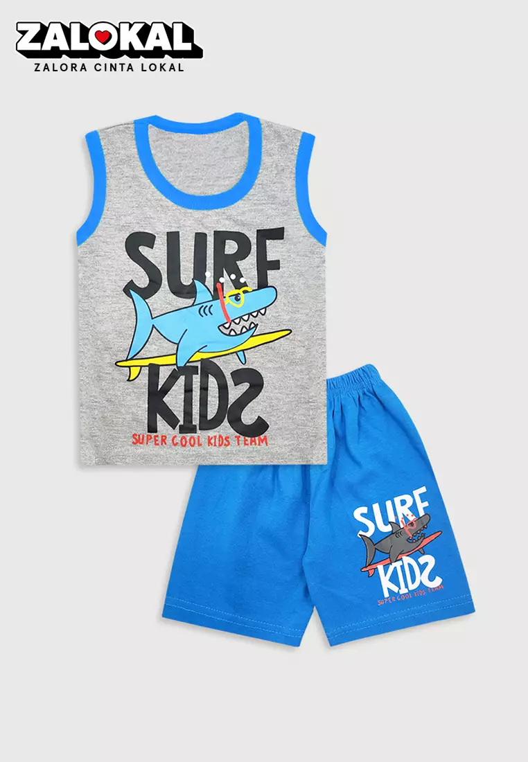 WAKAKIDSWakakids Baju Singlet Bayi Anak Laki Laki Usia 6 Bulan Hingga 12 Bulan Setelan Celana Kaos Motif Surf Kids Shark 3317 Turkis158900.0062100.00