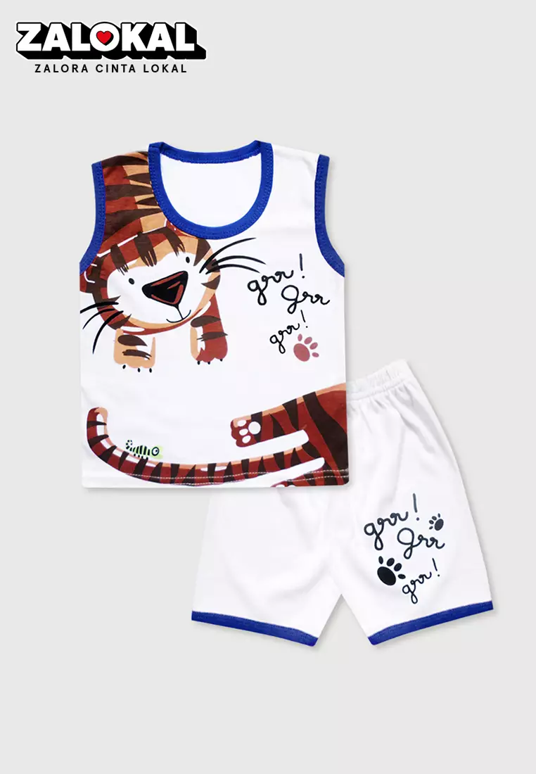 WAKAKIDSWakakids Baju Singlet Motif Tiger Setelan Bayi Anak Laki Laki Usia 6 Bulan Hingga 3 Tahun 2840 Biru103900.0051800.00