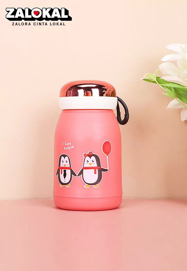 Wakakids Botol Minum Kaca Anak Food Grade Minimalis 380ml Motif Pinguin Venrz Pink