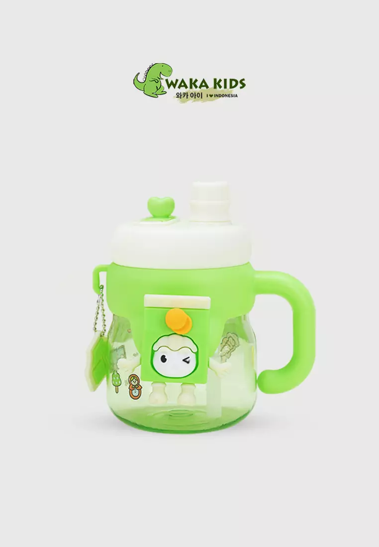 WAKAKIDSWakakids Botol Minum Plastik Transparan Bentuk Gelas Gagang Karakter Lucu Charm 2 Cara Minum 680ml K3033 Venrc Hijau96000.0050900.00