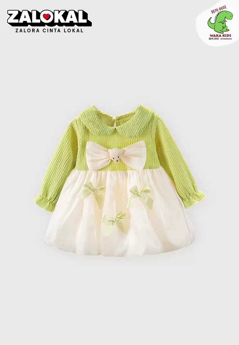 WAKAKIDSWakakids Dress Bayi Anak Perempuan Lengan Panjang Gaun Balon Pesta Ribbon Bear 4435 Venrz Hijau181800.00106100.00
