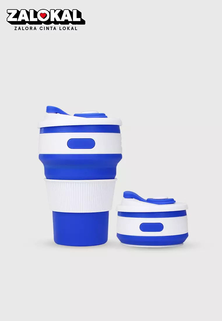 Wakakids Gelas Lipat Silikon Portable Coffe Cup Travel Mug Anti Bocor 350ML K230 Venjr Biru Tua