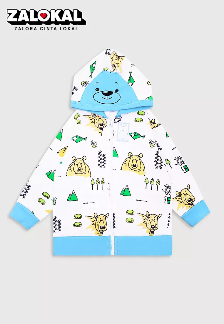 Wakakids Jaket Bayi Anak Laki Laki Usia 6 Bulan Hingga 12 Bulan Motif Bear Forest 4083 Biru