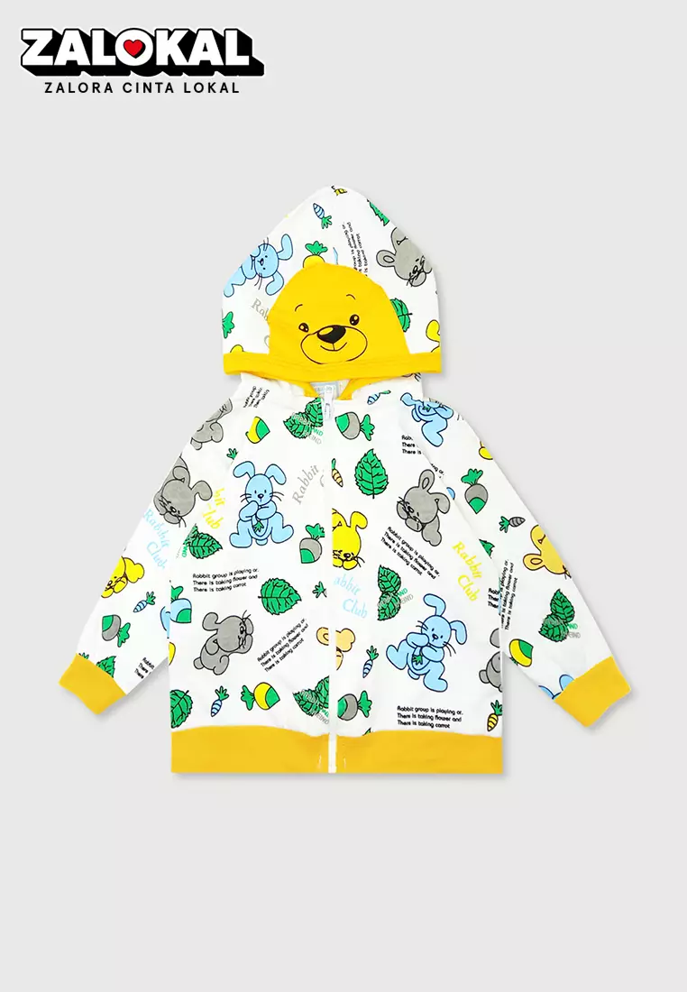 Wakakids Jaket Bayi Sweater Anak Usia 6 Bulan Hingga 12 Bulan Motif Rabbit Full Printing 4089 Kuning