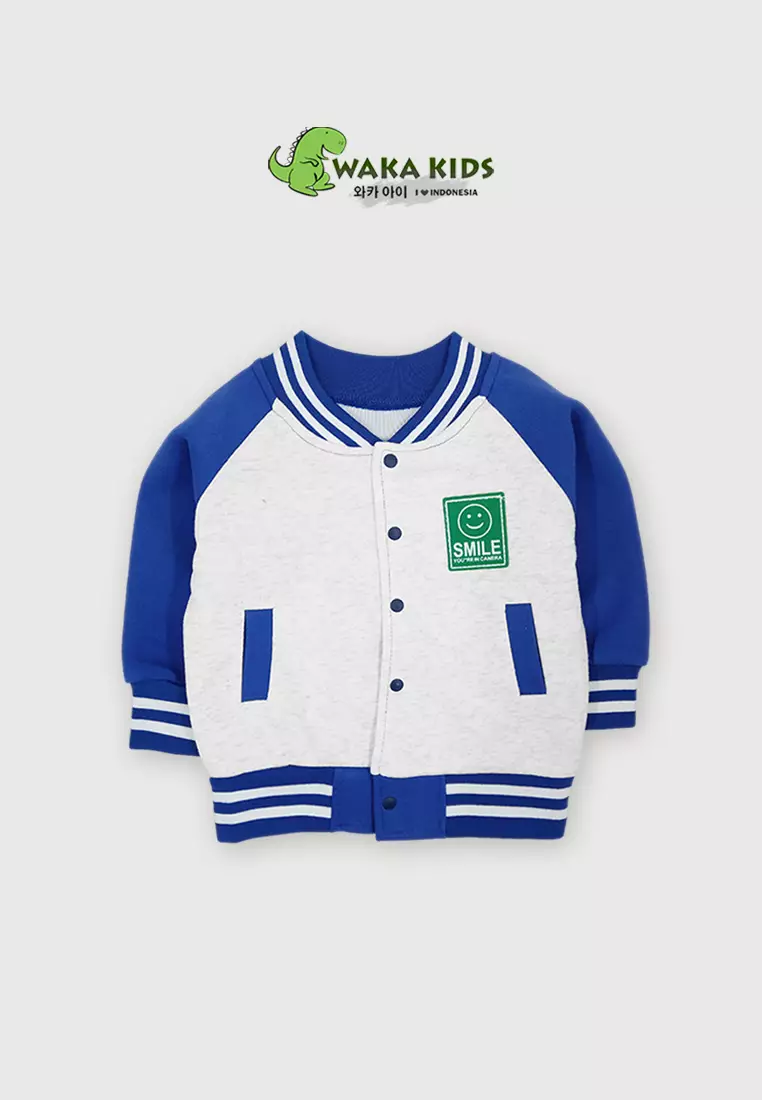 Wakakids Jaket Varsity Baseball Anak Laki Laki Logo Patch 4462 Venrz Biru