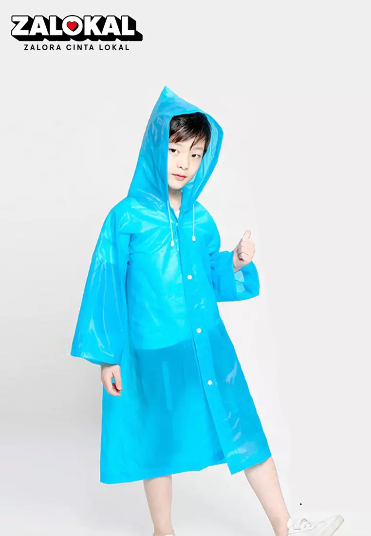Wakakids Jas Hujan Anak Mantel Terusan Rain Coat Polos Semi Transparan Venhs Biru