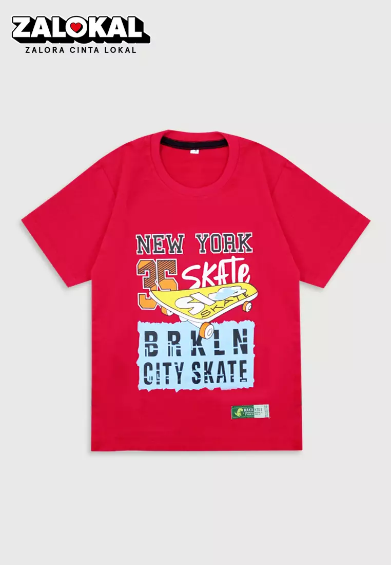 Wakakids Kaos Atasan Baju Anak Laki Laki Usia 1 Tahun Hingga 4 Tahun Motif New York City Skate 3959 Merah