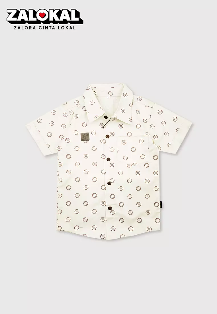 Wakakids Kemeja Anak Laki Laki Usia 1 Tahun Hingga 8 Tahun Atasan Baju Kerah Collar Shirt Motif Kancing Button Full Printing 4293 Vensk Cream