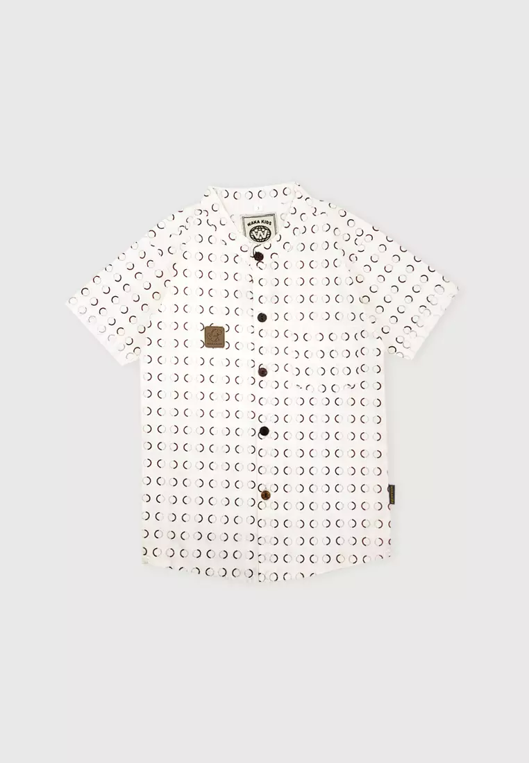 Wakakids Kemeja Anak Laki Laki Usia 1 Tahun Hingga 8 Tahun Atasan Baju Kerah Shanghai Mandarin Collar Shirt Motif Circle Pattern 4300 Vensk Cream