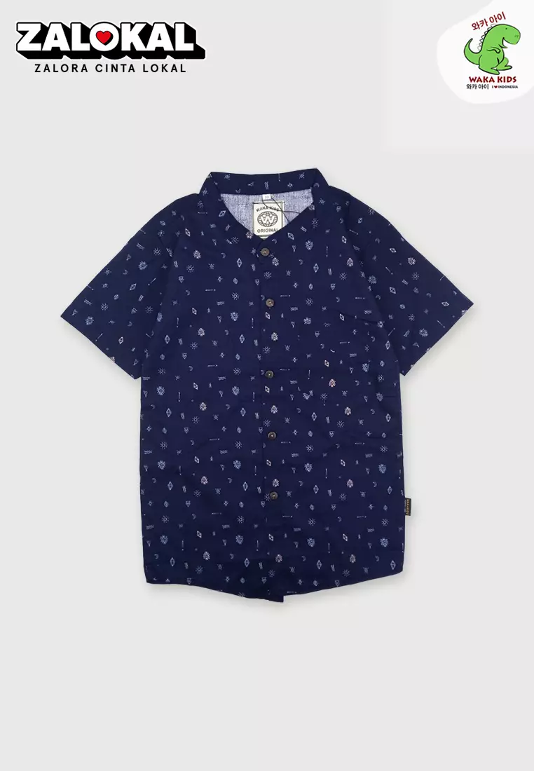 WAKAKIDSWakakids Kemeja Anak Laki Laki Usia 6 Tahun Hingga 9 Tahun Atasan Baju Kerah Shanghai Mandarin Collar Pattern Shirt 4333 Vensk336000.00108700.00