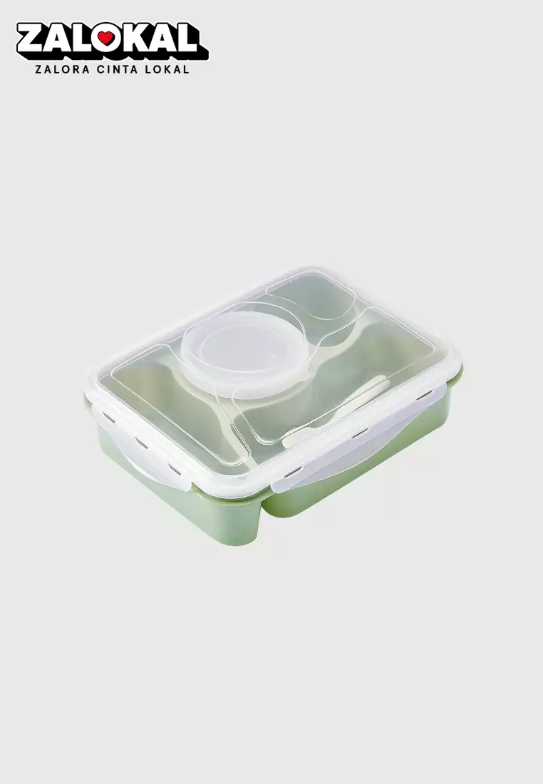 Wakakids Lunch Box 4 Sekat Kotak Makan Bekal BPA Free Anti Tumpah 5371 Venjr Hijau