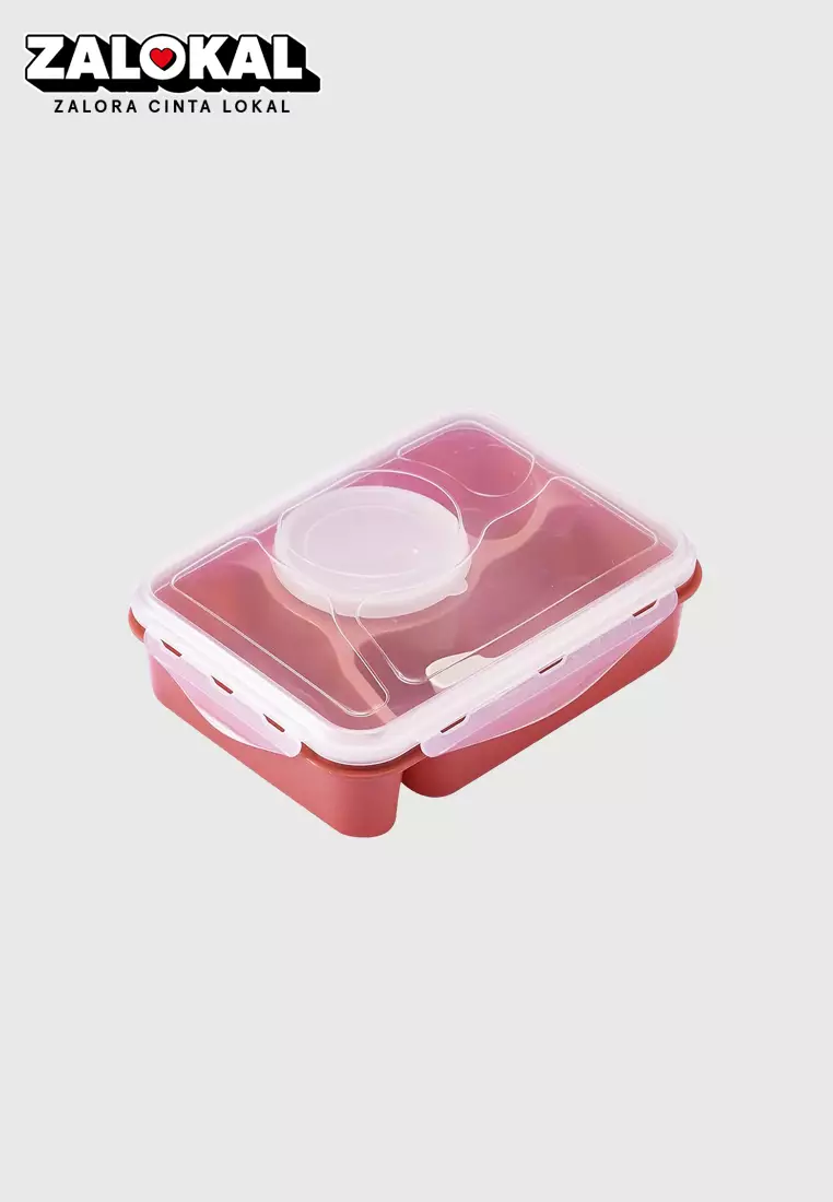 Wakakids Lunch Box 4 Sekat Kotak Makan Bekal BPA Free Anti Tumpah 5371 Venjr Merah