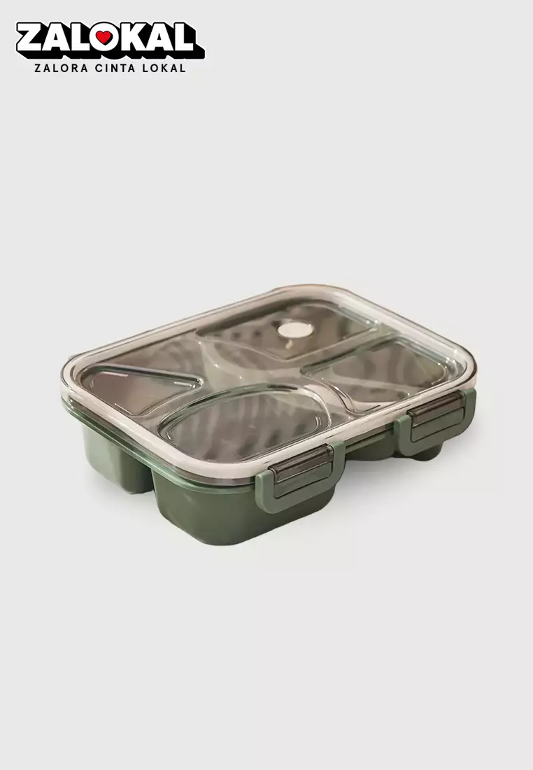 Wakakids Lunch Box Bento 5 Sekat Kotak Makan Bekal Portable BPA Free Anti Tumpah Free Sendok Hijau