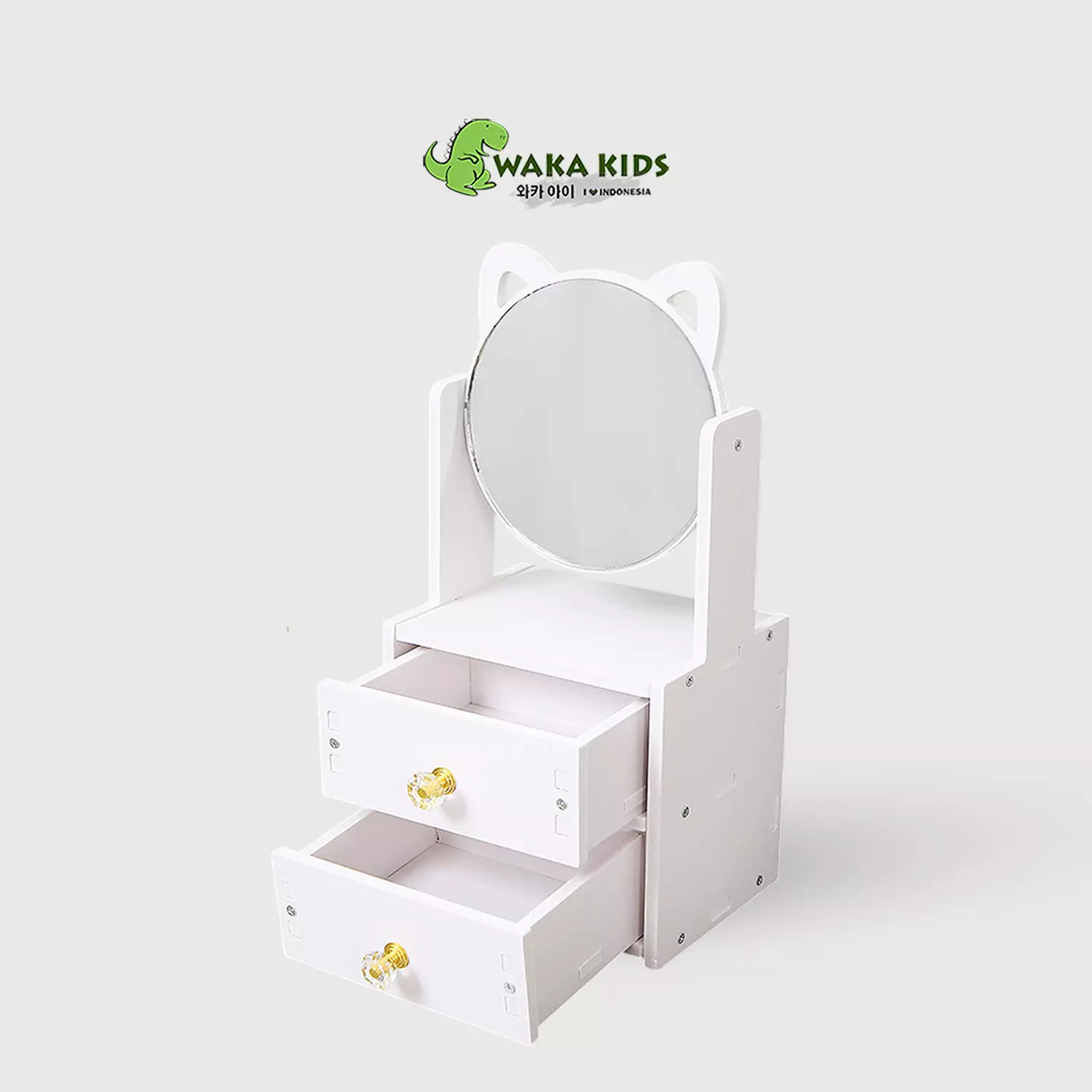 Wakakids Rak Laci Make Up 2 Susun dengan Cermin Vintage Tempat Kosmetik Storage Venrc Putih