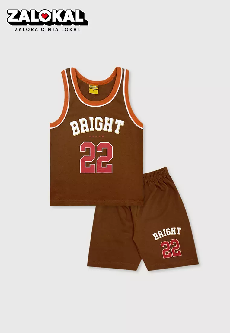 Wakakids Setelan Anak Laki Laki Baju Singlet Usia 6 Bulan Hingga 5 Tahun Set Celana Kaos Motif Bright 22 4081 Coklat