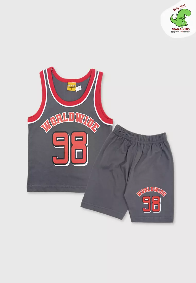 WAKAKIDSWakakids Setelan Anak Laki Laki Baju Singlet Usia 6 Bulan Hingga 5 Tahun Set Celana Kaos Motif Worldwide 98 4082 Abu187800.0072400.00
