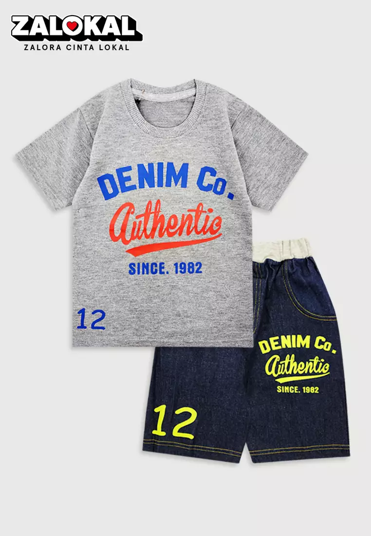 Wakakids Setelan Anak Laki Laki Denim Authentic 2602 Abu Muda