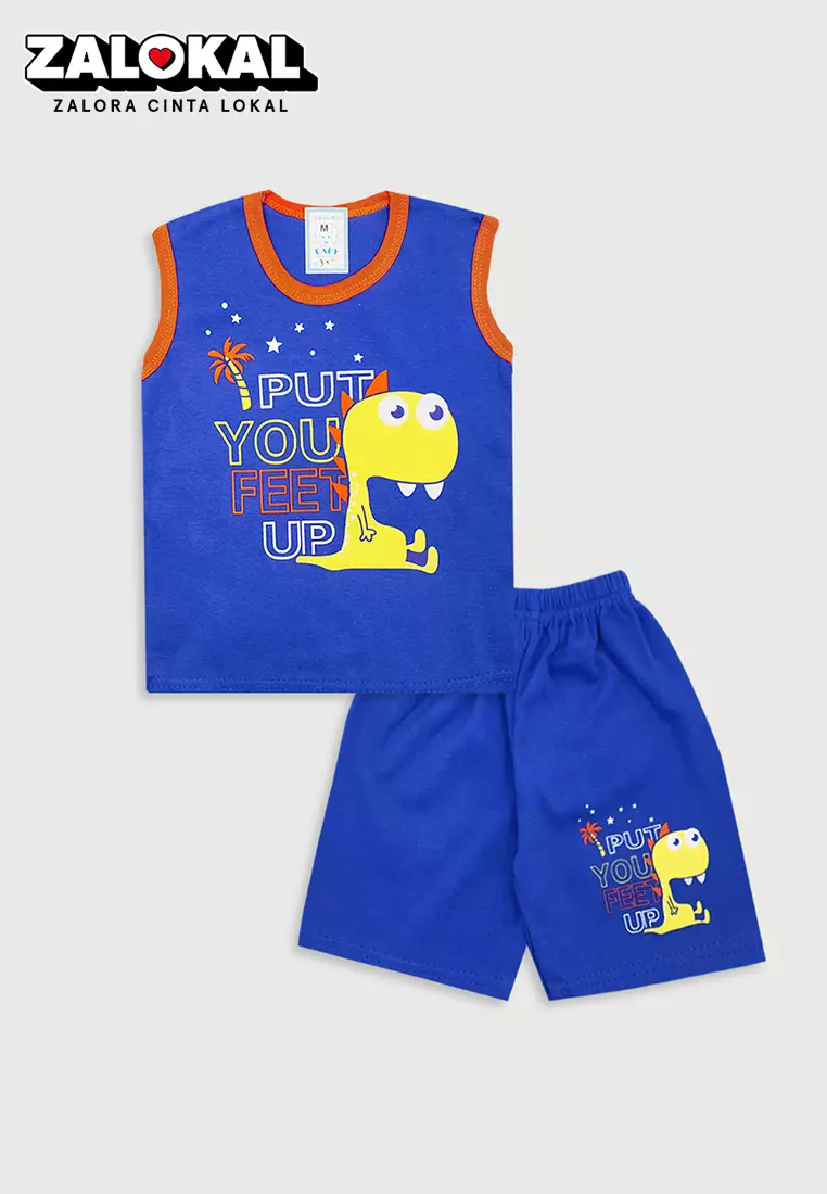WAKAKIDSWakakids Setelan Baju Singlet Bayi Anak Laki Laki Usia 6 Bulan Hingga 12 Bulan Motif Put You Dino 3123 Biru158900.0067100.00