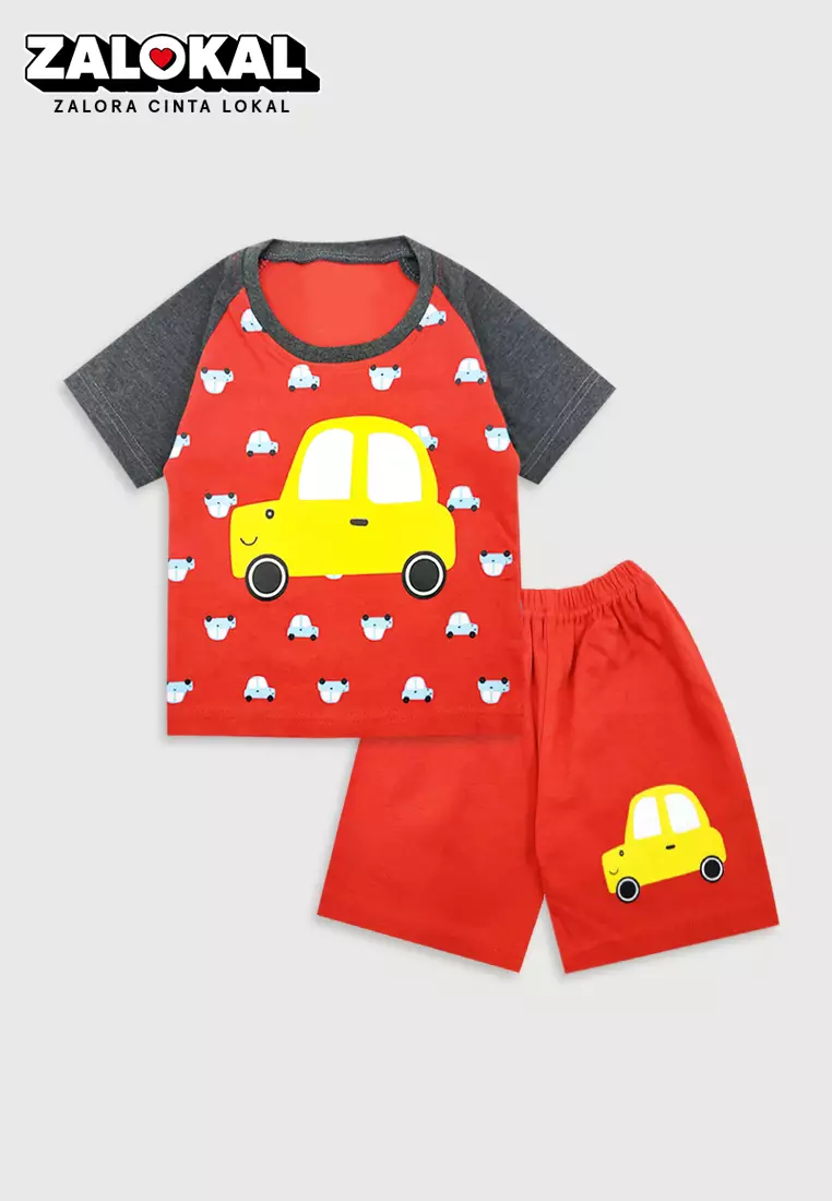 Wakakids Setelan Bayi Anak Laki Laki Motif Car Merah