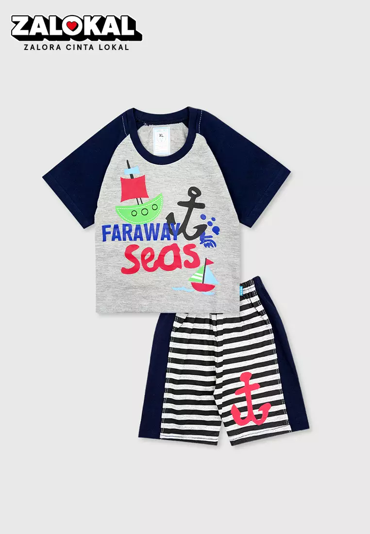 WAKAKIDSWakakids Setelan Bayi Laki Laki Baju Lengan Pendek Anak Usia 12 Bulan Hingga 18 Bulan Set Celana Kaos Motif Anchor Sea 3094 Navy181900.0067400.00